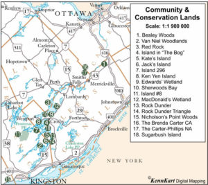 Map Detailed Map of RWLT Lands Map of Rideau Land Trust Community and Conservation Lands Click on map for larger version – NEW tab will open for our convenience